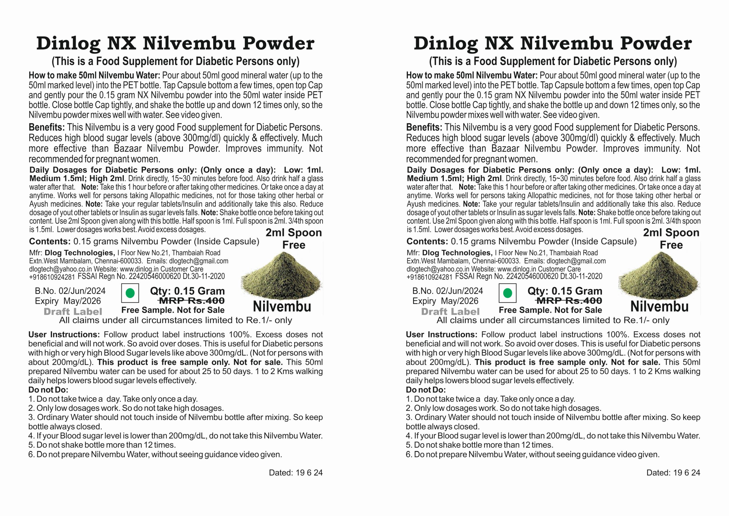 are releasing our next product, just Nilvembu Powder as a Diabetic