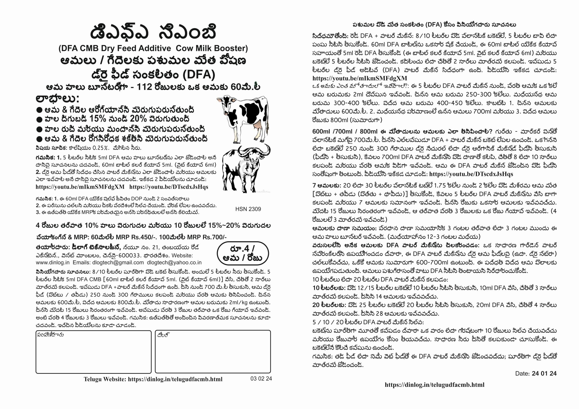 புதிய டிஎப்ஏ சிஎம்பி (DFA CMB) பசு / எருமை மாடுகளுக்கான பால் பூஸ்டர்